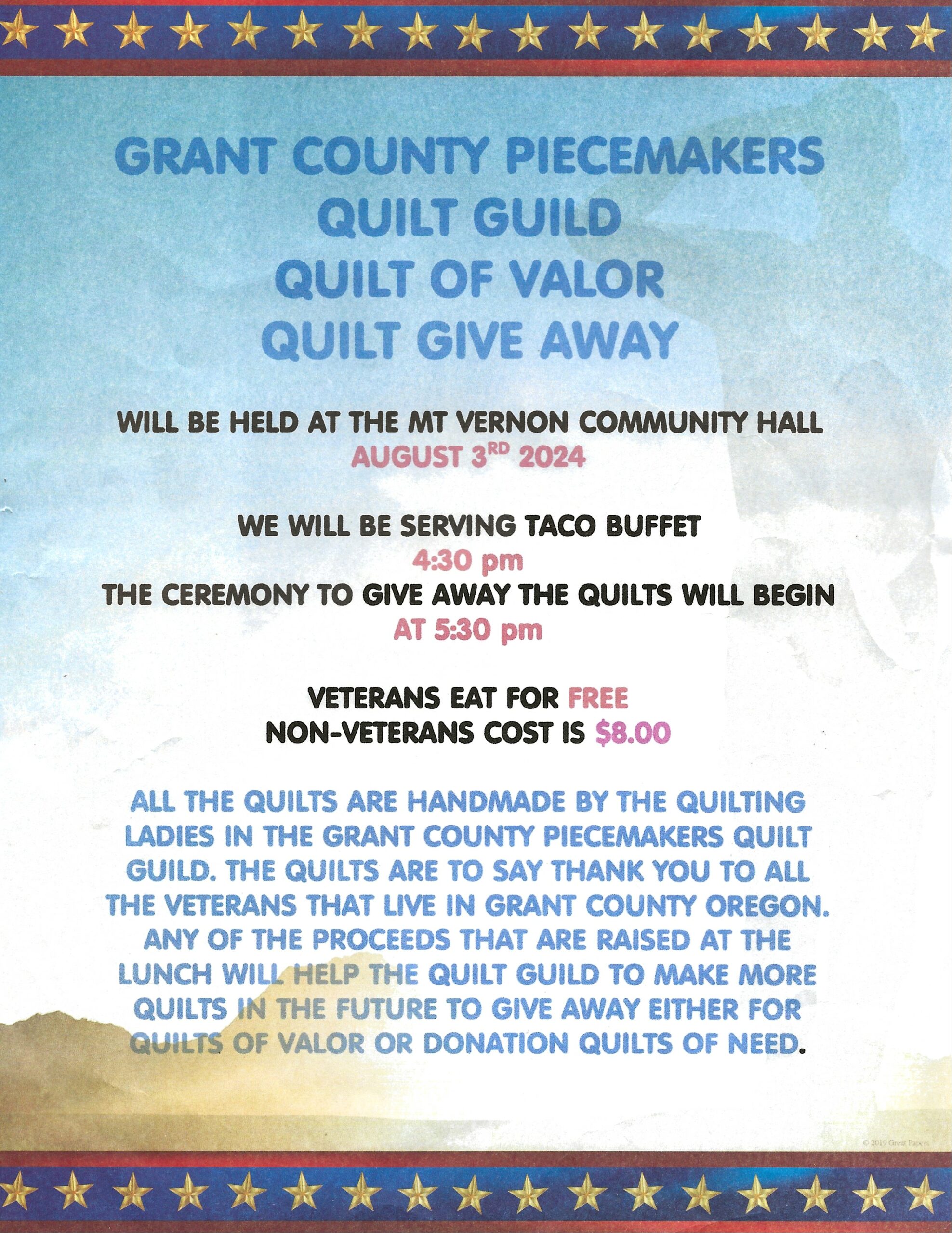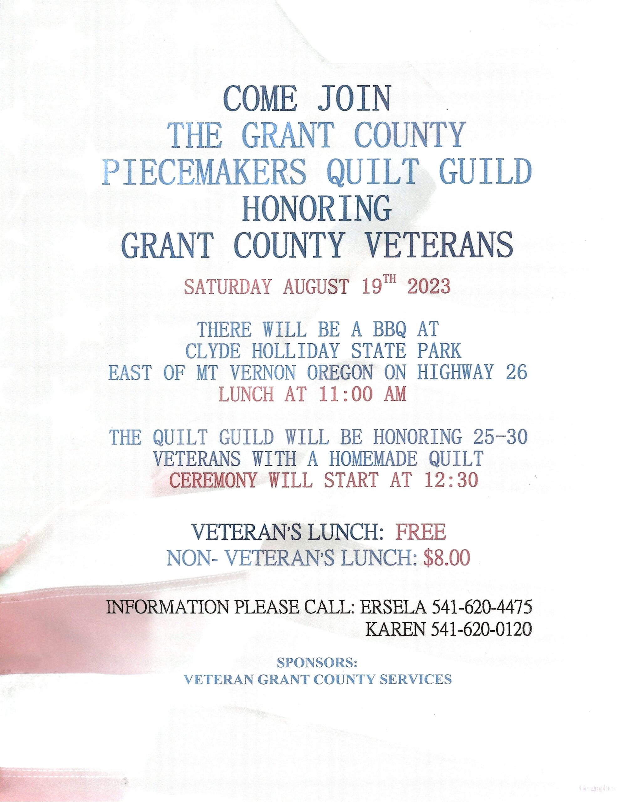 Grant County Piecemakers Quilt Guild Honoring Grant County Veterans