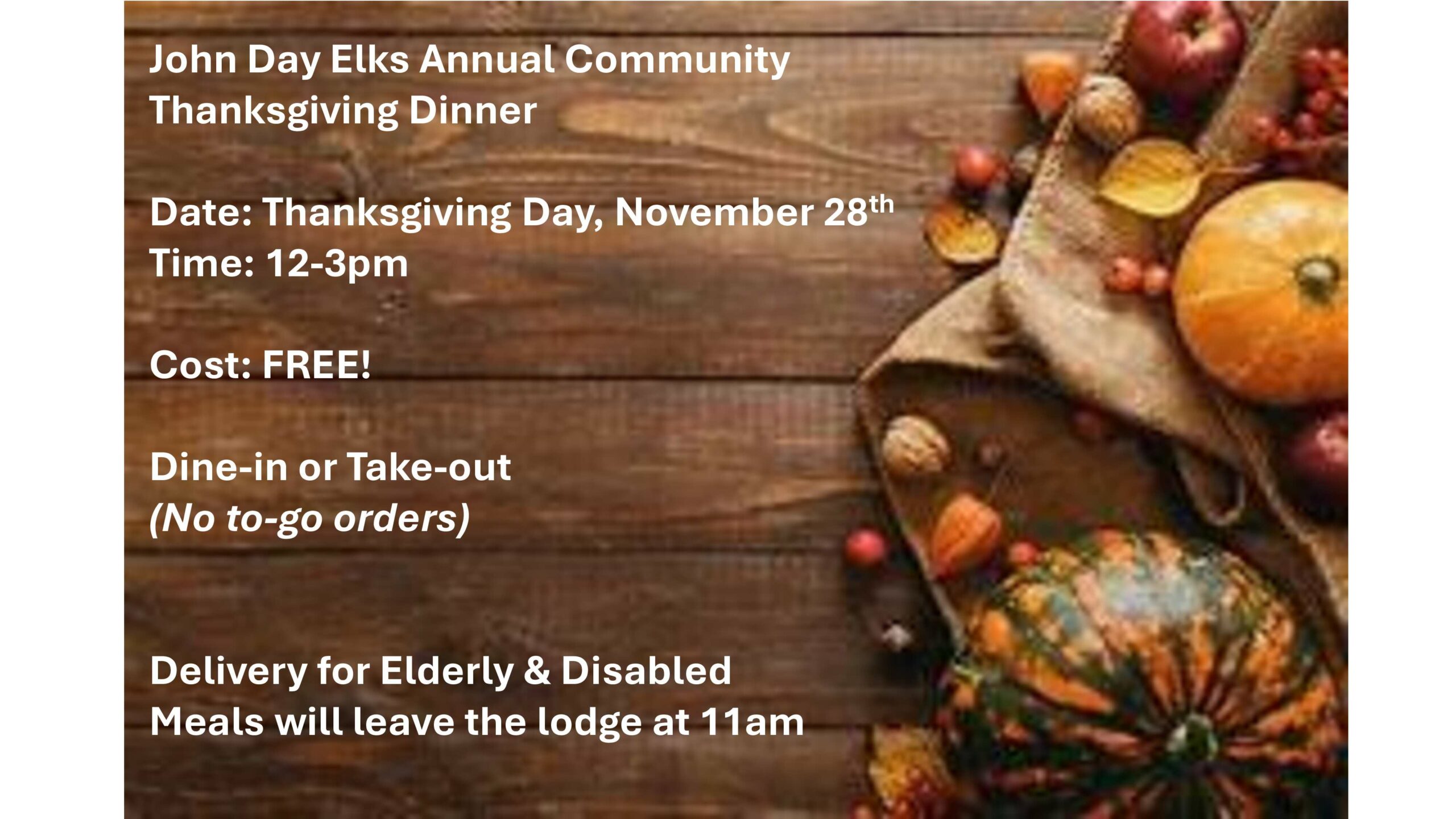 Social Hour - 5:00 - 6:00 PM Dinner served at 6:00 PM - Dinner Choices - Tri-tip or Salmon Program to follow RSVP via email - gcadmin@gcoregonlive.com or 541-575-0547