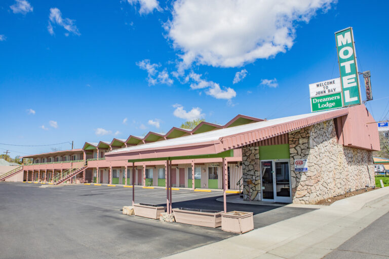 We’re here to provide our guest an authentic John Day experience at our locally owned and operated business. The Dreamers Lodge Motel is conveniently located in the heart of Eastern Oregon, John Day. Our straightforward rooms and suites all include exterior entrances and en suite bathrooms, and come equipped with free high-speed WiFi and cable TV, as well as mini-fridges, microwaves, tea and coffee maker. Suites add sitting areas and kitchenettes with dining tables. Complimentary on-site parking is available as well as pet friendly rooms (pet fee will apply).