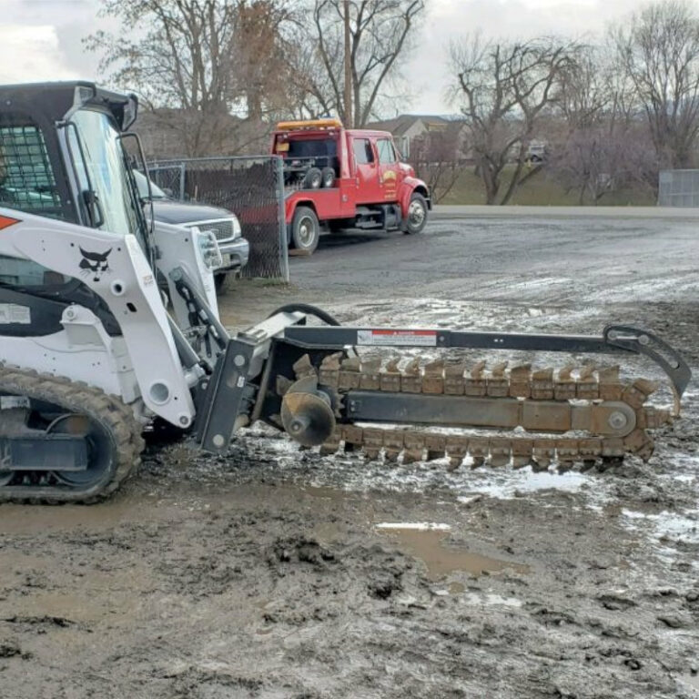 Attachments available for the Kubota (Blade, Brush-hog, Bucket, and Tiller), Bobcat (Auger 12″,18″, or 24″, Bucket, and Fork), Track Bobcat with trencher, sweeper and other bobcat attachments available, and Backhoe. Please call for rental fees, or stop by.