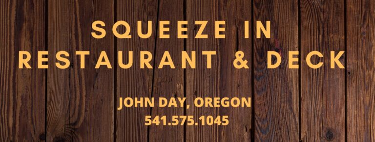 Located on Canyon Creek in downtown John Day Oregon, the Squeeze In Restaurant and Deck serves great food. The daily fare is always filling, satisfying and tasty.