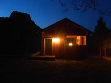 Stellar cabin is a private hideaway outside of Kimberly 2 miles. A cozy cabin with a wood fired hot tub, cookshack, movies, games, foosball, and horseshoes.